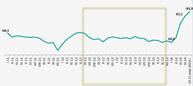 В то время как вплоть до 2012-го года рост благосостояния граждан повышался стремительно...